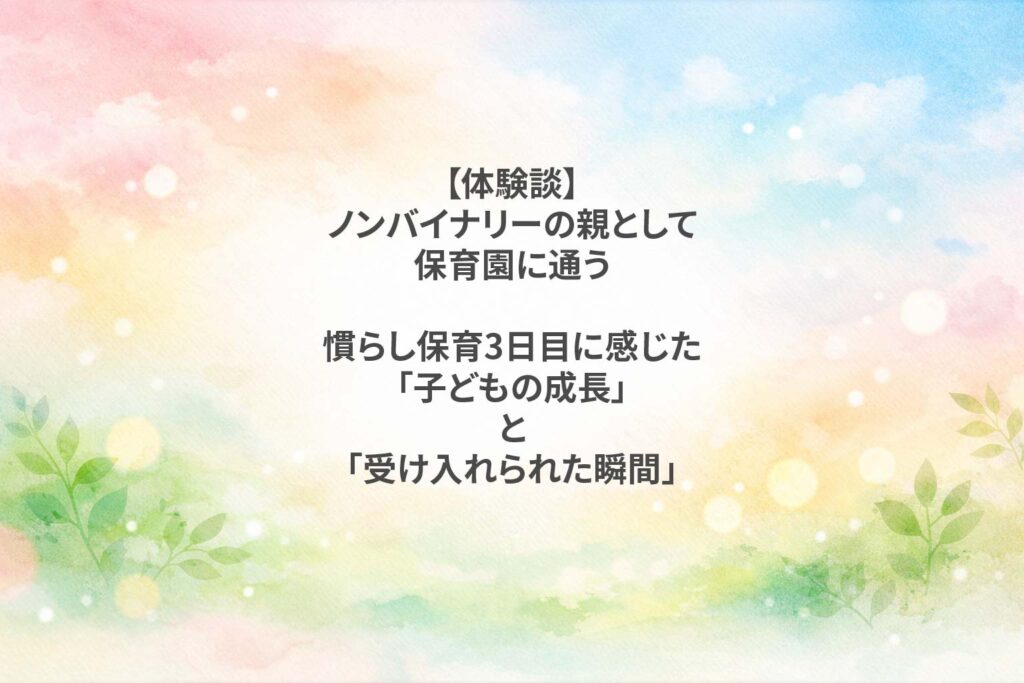 【体験談】ノンバイナリーの親として保育園に通う|慣らし保育3日目に感じた「子どもの成長」と「受け入れられた瞬間」