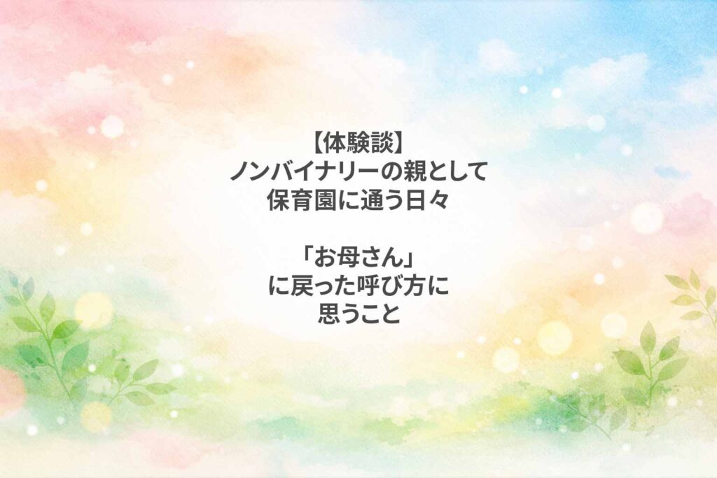 【体験談】ノンバイナリーの親として保育園に通う日々|「お母さん」に戻った呼び方に思うこと