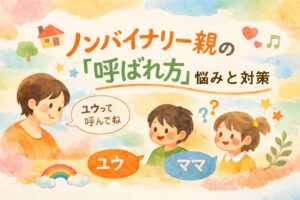 この記事では、「ノンバイナリー/Xジェンダー親の“呼ばれ方”の悩み」に焦点を当てて、他の当事者の実例(私がChatGPTに調べてもらったもの)を見ながら、幼児期に起こりやすい困りごとと対策、そして私はこれからどうしていったらいいんだろう?という点について調べました。